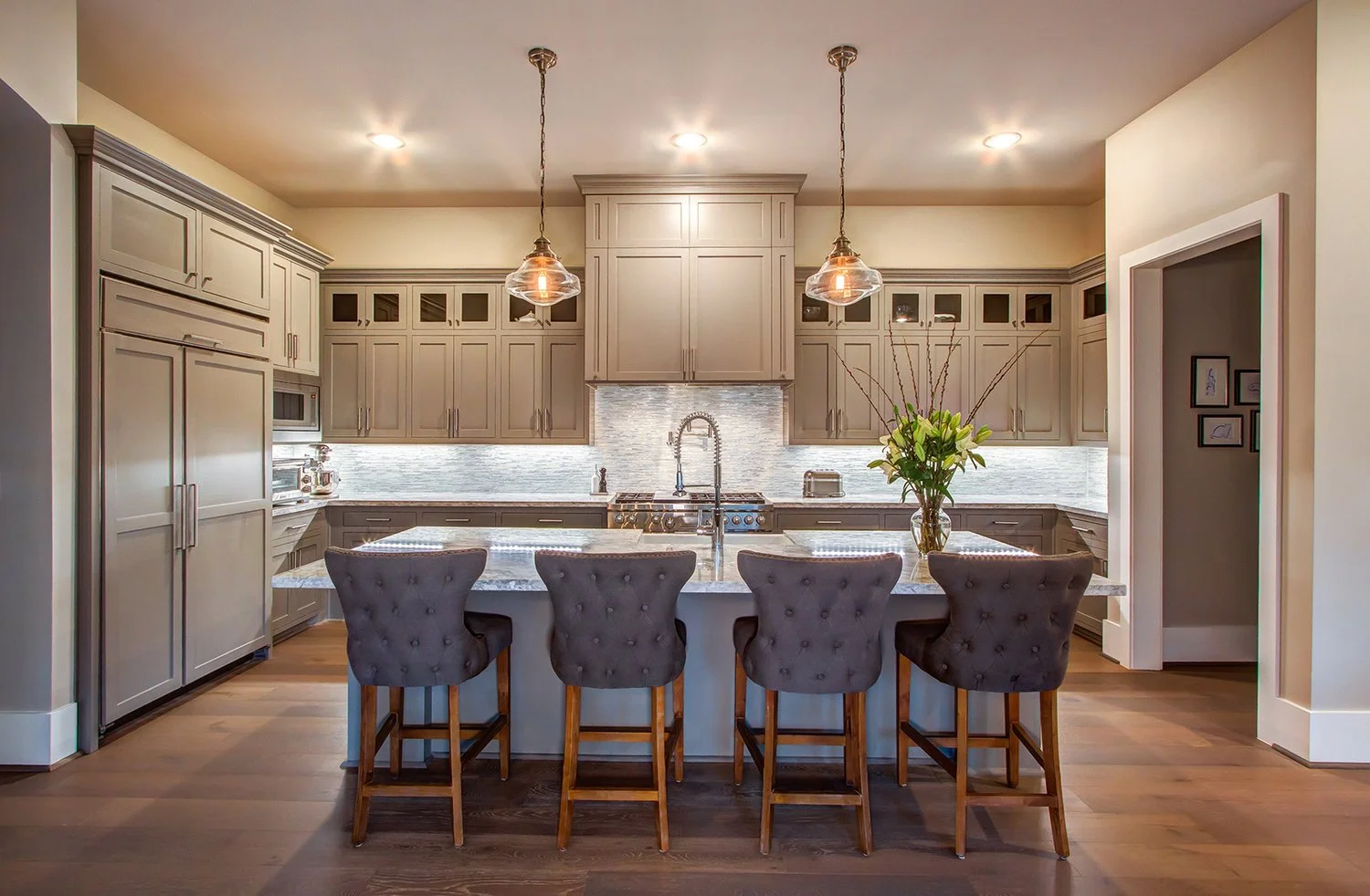 This home's lighter tones evoke feelings of peace and serenity. Modern roller shades coupled with pleated silk drapes make for beautiful, custom window treatments. The globally sourced art and unique accessories ensure that each room within the monochromatic scheme is uniquely bold.